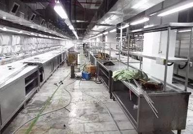 粗加工间是将水果、蔬菜、水产、禽、肉类等原料加工成初步半成品的场所。粗加工间内程序应是从污到洁污过程,所以应特别注意洁污分线和避免加工后的洁污倒流。工作过程中产生的大量废弃物等垃圾的运送路线不能与洁净物流线混淆。因水产品及禽类易于细菌感染,最好将其与蔬菜类粗加工分隔开。即设置荤食品加工间与蔬食品加工间。